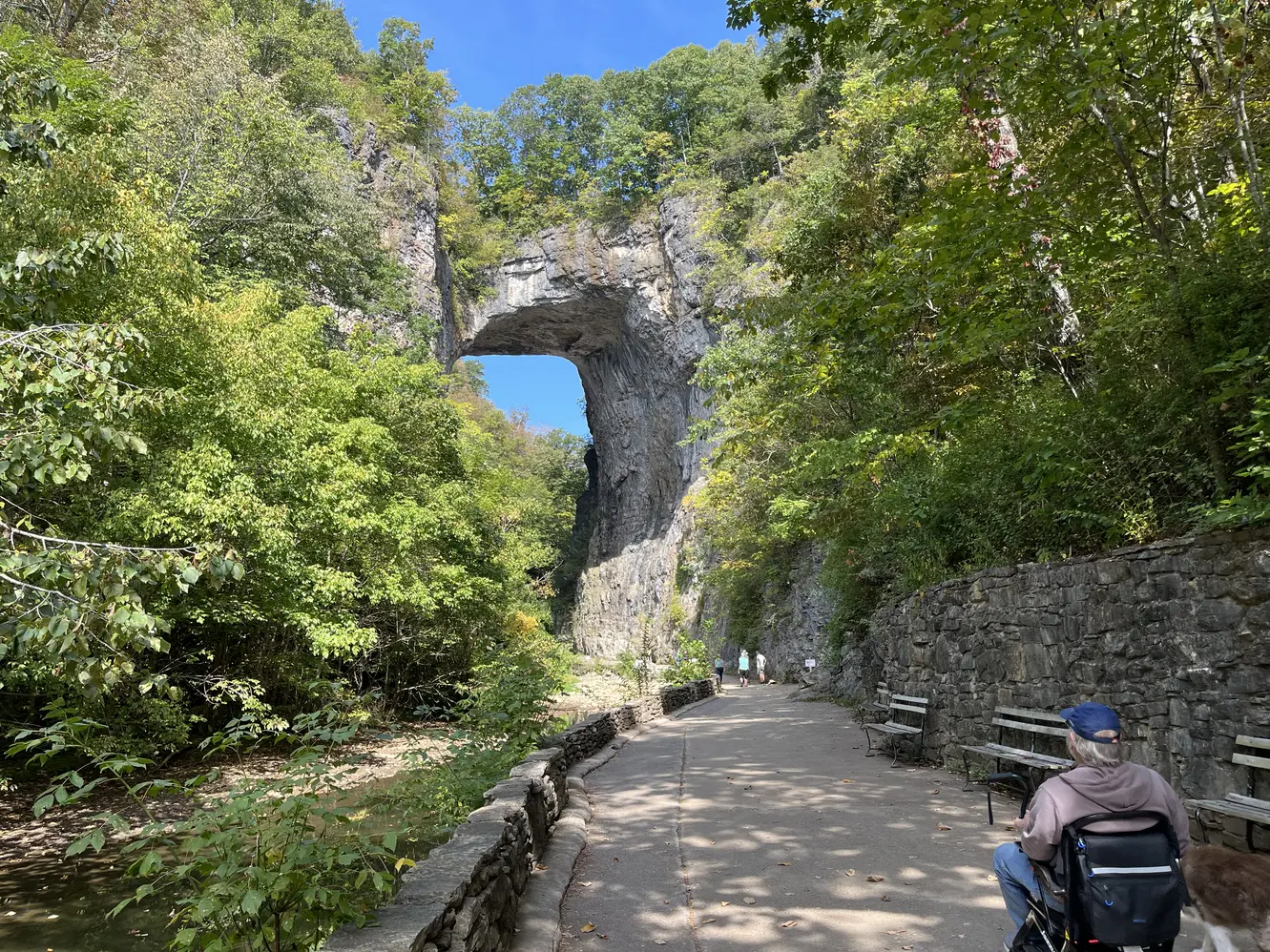 After three decades in Virginia (since 1992!), we finally checked Natural Bridge off our list. We stayed in Lynchburg the night before and rolled in the next morning, which turned out perfect for a quieter walk. The visitor center looks down over the creek, so you descend with that great sense of reveal—shade, running water, and then the limestone span appearing all at once.